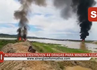 AUTORIDADES DESTRUYEN 44 DRAGAS PARA MINERÍA ILEGAL