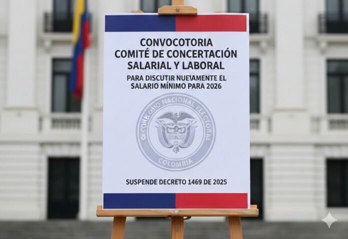 En cumplimiento del auto del Consejo de Estado que el jueves, 12 de febrero de 2026, decretó la suspensión provisional de los efectos del Decreto 1469 del 29 de diciembre de 2025, por medio del cual se autorizó el salario mínimo para 2026, el Ministerio del Trabajo convocó a una sesión extraordinaria de la Comisión Permanente de Concertación de Políticas Salariales y Laborales, para el lunes, 16 de febrero de 2026.