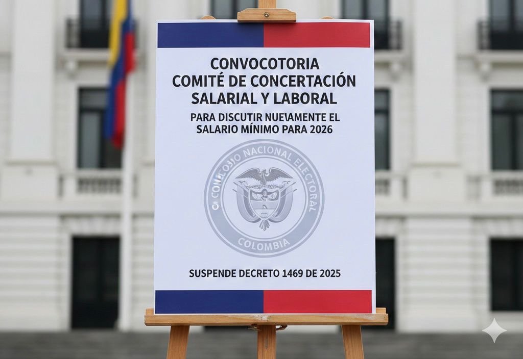 Esta convocatoria reafirma que la suspensión provisional del Decreto 1469 de 2025 no anula el aumento del salario mínimo en un 23.7%, pero obliga al Gobierno, empresarios y trabajadores a volver a la mesa. La concertación, que fracasó en diciembre y que obligó al Gobierno nacional a decretar el salario mínimo en ejercicio de la competencia subsidiaria que le otorga la Ley 278 de 1996, hoy reaparece como exigencia jurídica.