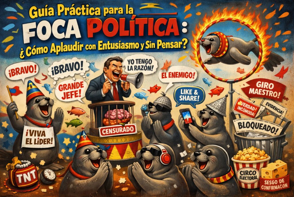 5. El Salto de la Foca ante la Incoherencia: Si su líder hace hoy exactamente lo que criticó ayer, no se confunda. Simplemente asuma que es una «jugada maestra» que su intelecto de foca aún no alcanza a comprender. Su labor no es cuestionar la pirueta, sino celebrar lo alto que saltó el entrenador.