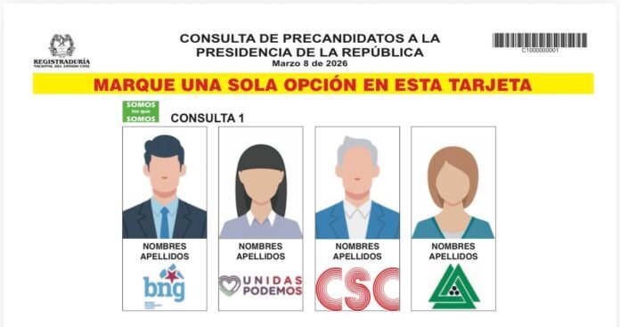 Durante la Comisión Nacional para la Coordinación y Seguimiento de los Procesos Electorales que se llevó a cabo en Bogotá, el registrador Nacional del Estado Civil, Hernán Penagos, presentó el formato de la tarjeta electoral de las consultas para la escogencia de candidatos a la Presidencia de la República, que se realizarán el 8 de marzo.